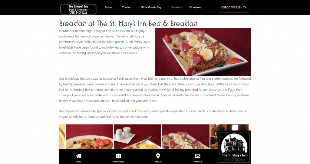With a new website that reflects the style and beauty of their inn, the owners of the Saint Mary’s Inn will find it easier to update the website. Their suites now have a format that’s easy to look at and displays the amenities of each room that makes staying there worthwhile. With the site housed in WordPress, their performance speeds have improved and made future SEO efforts easier to maintain. The new booking system looks like the website and allows a quick way for visitors to go between looking at suites and booking their room during their trip.